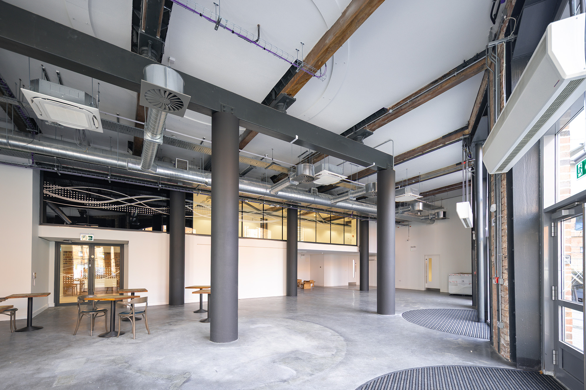 The listed former carpet factory and college is now an attractive mixed-use facility including office, co-working and hybrid working spaces, alongside food and beverage spaces.